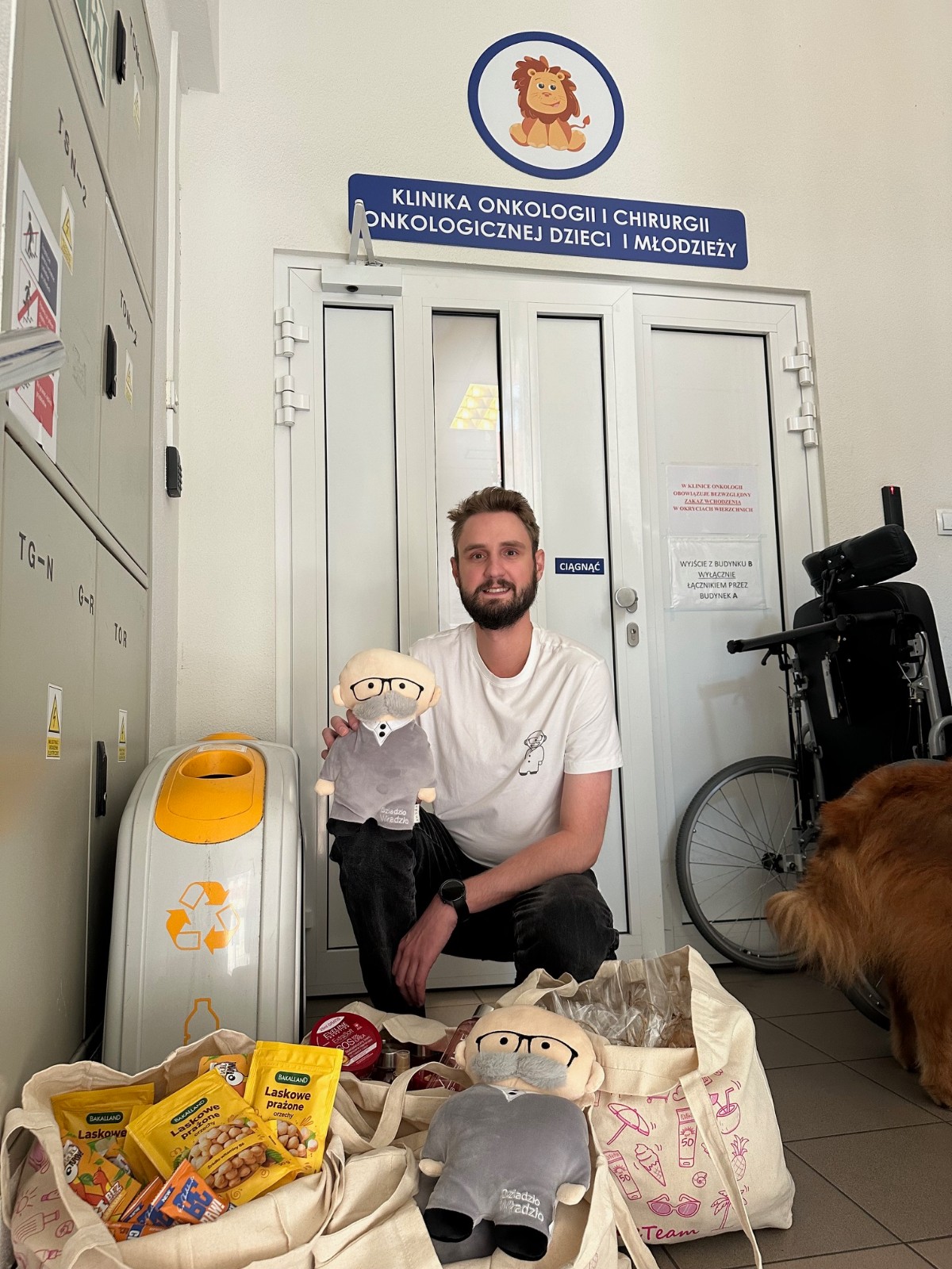 Wraz z Fundacją Spełnionych Marzeń mieli zaszczyt odwiedzić małych pacjentów przebywających na oddziałach onkologii dziecięcej. W centrum uwagi znalazł się towarzyszący im, wyjątkowy gość, który skradł serca wszystkich. Czworonożny terapeuta Roman. Pies o wielkim sercu
