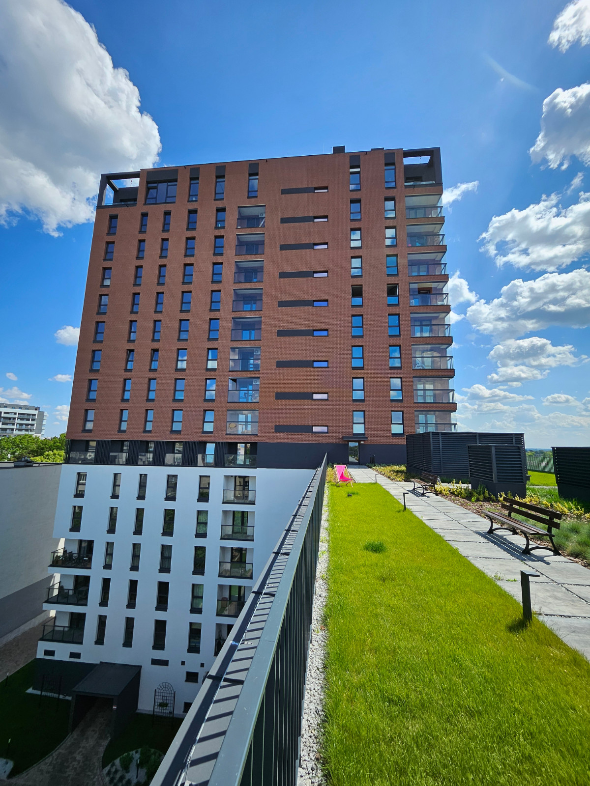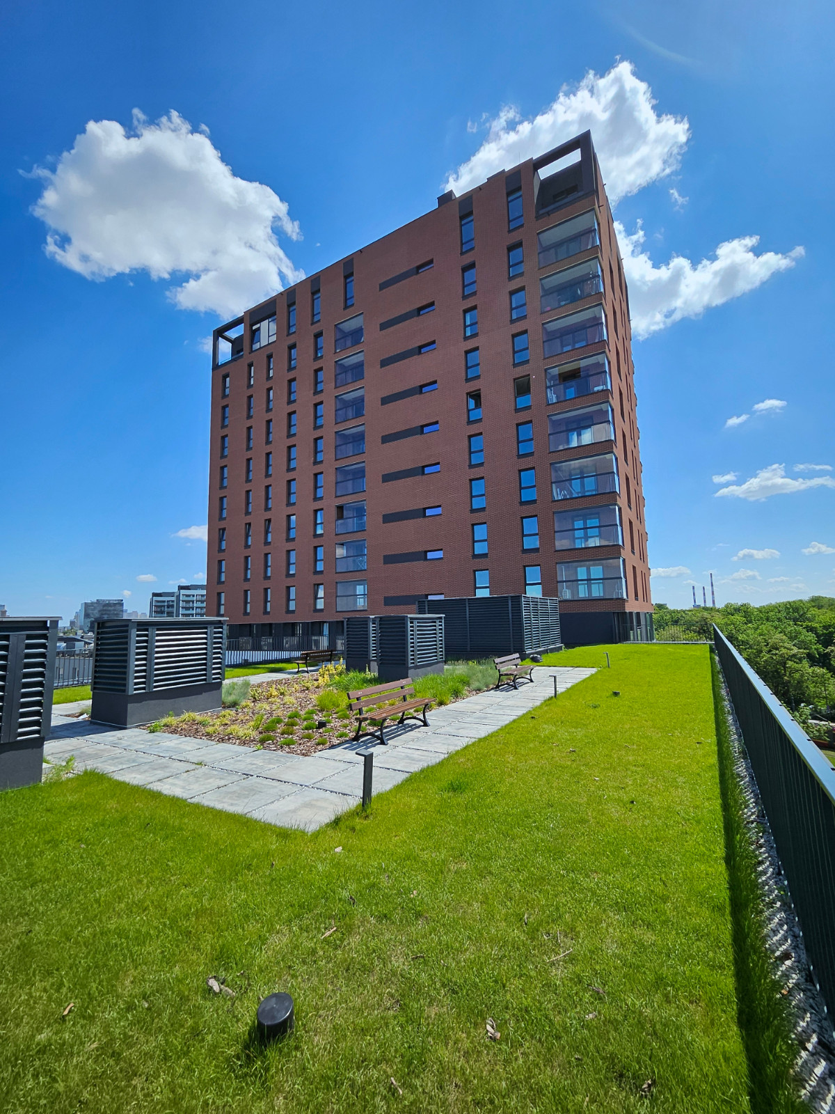 Tobaco Park II już wizualnie zachwyca swoją architekturą. 53 metry, XVI kondygnacji w górę robi wrażenie. Nowoczesny, a jakże świetnie wkomponowany w historyczną, już istniejącą zabudowę z ciekawym rozwiązaniem części wspólnych. Zieloną część urządzono tradycyjnie na patio oraz nietypowo na dachach I i VI kondygnacji, tworząc zielone tarasy widokowe, doskonałe miejsce do spotkań. Dodatkowo, na elewacji, na różnych wysokościach przy oszklonych loggiach, zaprojektowano zieleń pnącą, pięknie współgrającą z kolorem budynku i historyczną zabudową w tle.